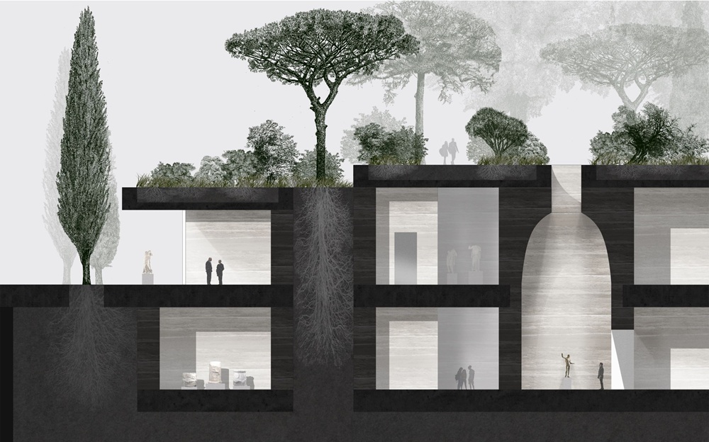 Ακτινογραφία των υπόσκαφων εκθεσιακών χώρων κάτω από την επιφάνεια του κήπου του ΕΑΜ