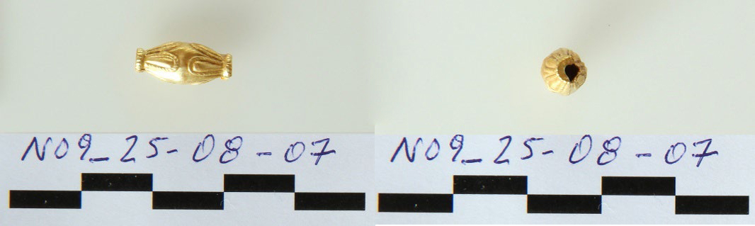 Κατά τη διάνοιξη ανασκαφικής τομής στο εσωτερικό μεγάλης λιθόκτιστης κατασκευής, που βρίσκεται εξωτερικά και σε άμεση γειτνίαση με τα κατάλοιπα του τείχους που προστάτευε την επέκταση του οικισμού της Μέσης Εποχής του Χαλκού (το λεγόμενο «εσωτερικό προάστιο») βρέθηκαν οκτώ χρυσά διμερή δισκοειδή περίαπτα, ένα χρυσό δισκοειδές περίαπτο, επτά χρυσές αμφικωνικές ψήφοι, μία χρυσή κυλινδρική ψήφος, οκτώ διακοσμητικά ελάσματα από φύλλο χρυσού και επτά σφαιρικές ψήφοι από καρνεόλη. Όλα πιθανόν ανήκουν σε ένα χρυσό περιδέραιο ή κρεμαστό αντικείμενο, χρονολογούνται στο πρώτο μισό της δεύτερης χιλιετίας π.Χ. και διατηρούνται σε άριστη κατάσταση. Επιπλέον βρέθηκαν δώδεκα θραύσματα χαλκού που πιθανόν προέρχονται από μαχαιρίδια και μία βελόνη/περόνη.