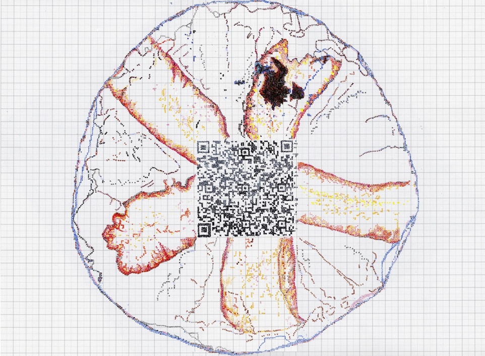 Αξίζει να αναφερθεί ότι σε κάποια από τα σχέδιά της παρατηρεί κανείς έναν χειροποίητο κωδικό QR, δομημένο και αυτόν από μικροσκοπικά στοιχεία. Το ψηφιακό αποτύπωμα αυτών των κωδικών σχηματίζει όταν το “διαβάσεις” μέσω ενός κινητού μια μικρή αφήγηση, ένα ακόμα έργο, αφετηρία του οποίου είναι μία ιστορία που είχε ακούσει στην παιδική της ηλικία: «Αν θέλεις να κάνεις μια ευχή για κάποιον που αγαπάς και αυτή να πραγματοποιηθεί, ψιθύρισέ την σε έναν αχινό. Έτσι η ευχή μένει καλά φυλαγμένη και προστατεύει εκείνον για τον οποίο έγινε».