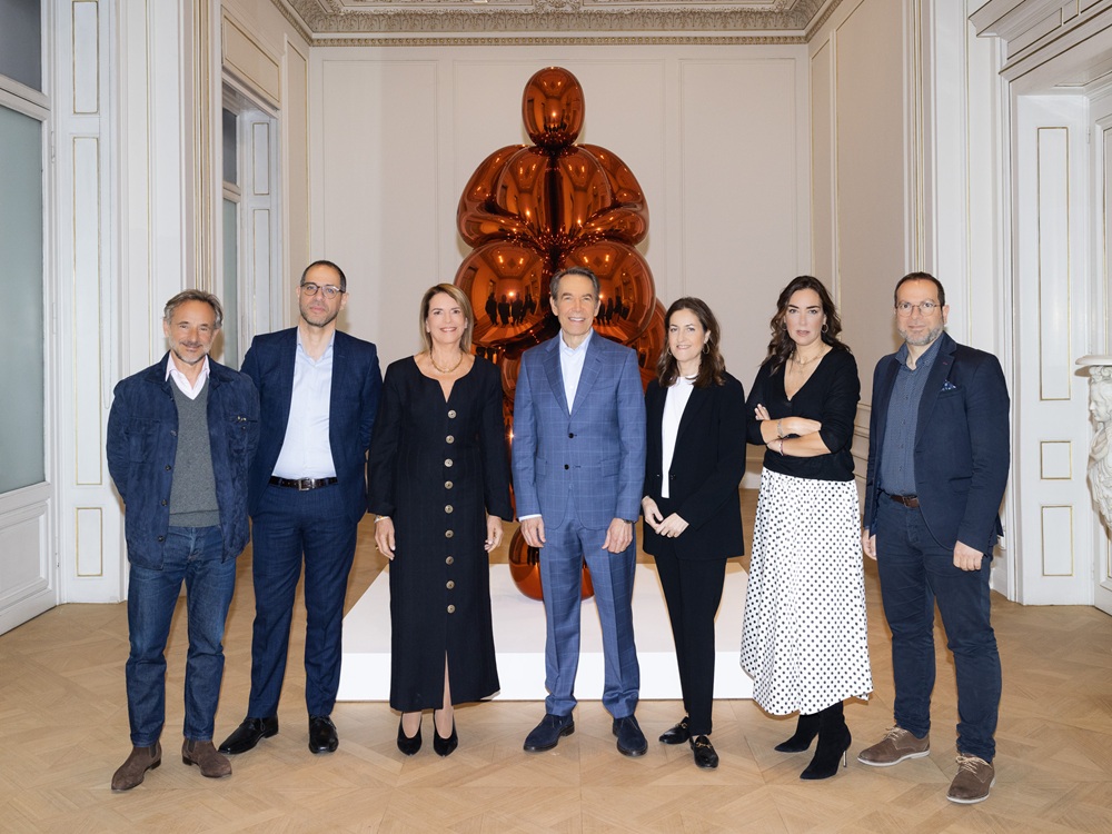 Αριστερά προς δεξιά: Φωκίων Ποταμιάνος (Μέλος ΔΣ και Ταμίας Sonnabend Collection Foundation), Πάνος Ιωσήφ (Επιστημονικός Διευθυντής ΜΚΤ), Σάντρα Μαρινοπούλου (Πρόεδρος και Διευθύνουσα Σύμβουλος του Μουσείου Κυκλαδικής Τέχνης), Jeff Koons, Αφροδίτη Γκόνου (Σύμβουλος Προγράμματος Σύγχρονης Τέχνης ΜΚΤ), Τιτίνα Πατέρα (Aντιπρόεδρος Β’ ΜΚΤ), Ιωάννης Φάππας (Επιστημονικός Διευθυντής ΜΚΤ)