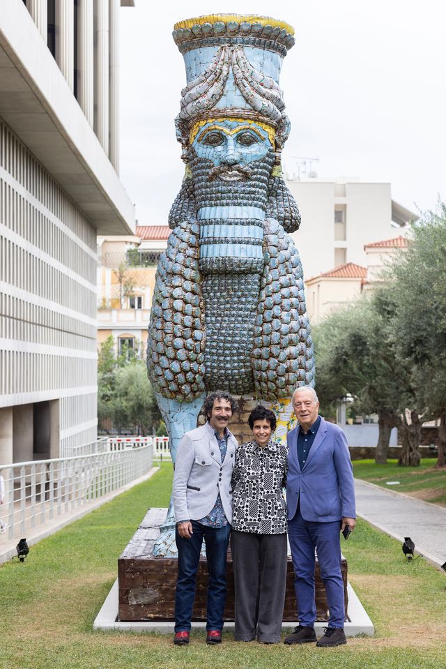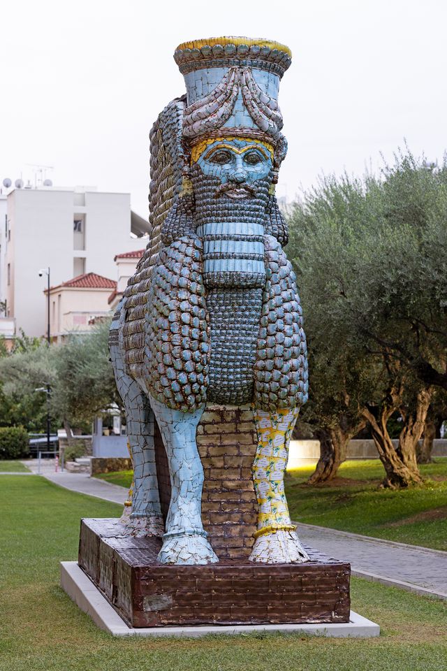 Τα Lamassu, περήφανοι φύλακες των εισόδων της Nineveh, θύματά πλειν της αρχαιοκαπηλίας και της αποικιοκρατίας, βρίσκονται στα μεγαλύτερα μουσεία του κόσμου. Η εγκατάσταση στο Μουσείο Ακρόπολής είναι ένα σχόλια για το άιτημα να επιστρέψουν τα γλυπτά στον τόπο τους. Το κεφάλι των Lamassu, ανθρώπινο για να συμβολίζει τη σοφία, το σώμα, λέοντα για να συμβολίζει τη δύναμη και τα φτερά της ράχης για την ελευθερία.