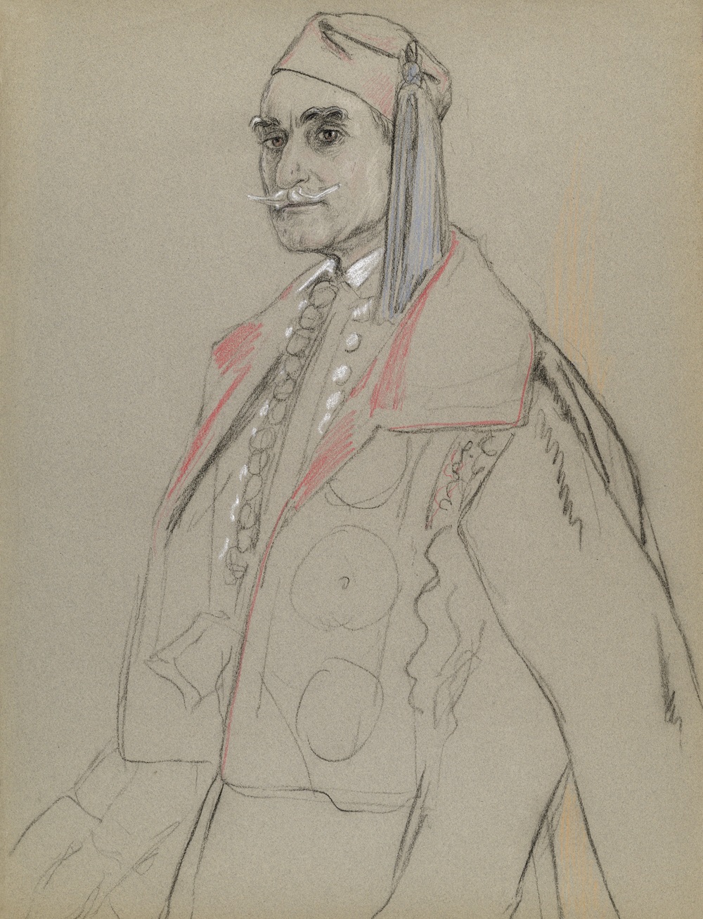 Nicolas Sperling, «Ανδρική μορφή με αστική ενδυμασία», παστέλ και μολύβι σε χαρτί. Εικονίζεται ο Αντώνης Μπενάκης (Μουσείο Μπενάκη) .