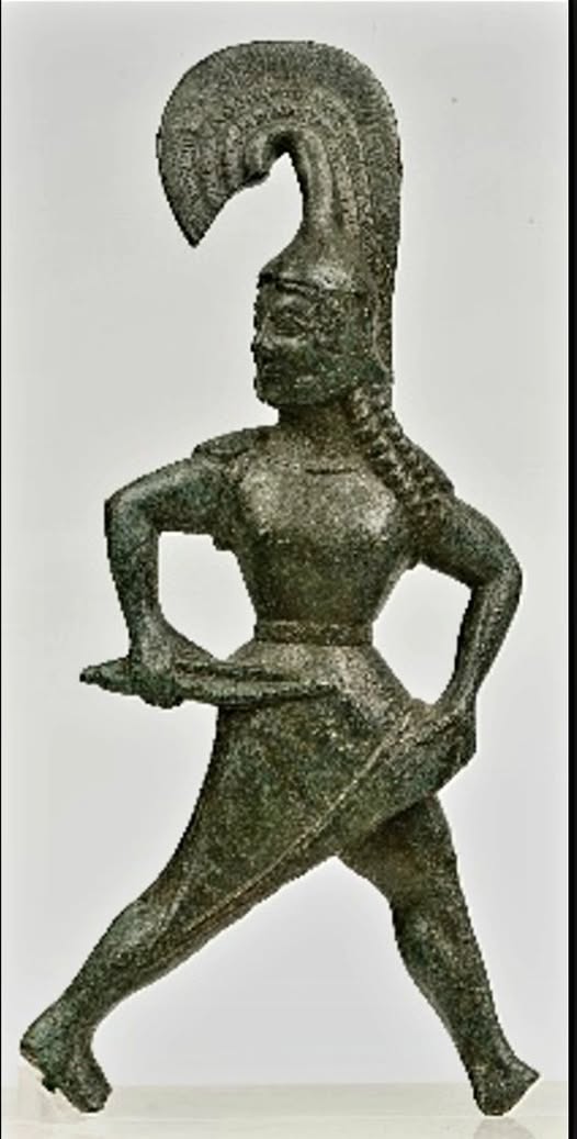 2. Χάλκινη δεξιά πτέρυγα μικρού αγαλματίου, χάλκινα μικρά ελάσματα (6 τεμάχια) από αγγείο, χάλκινο σταυρόσχημο αντικείμενο από ιπποσκευή, χάλκινη πόρπη χωρίς τη βελόνη της, 6 χάλκινοι κρίκοι, χάλκινη λαβή σκεύους, χάλκινο ασπίδιον, χάλκινη περόνη με κεφαλή σε σχήμα κομβίου, χάλκινη αιχμή δόρατος, δύο σιδερένιες λεπίδες ξιφών, πέντε σιδερένιες αιχμές δοράτων, σιδερένιος αυλός από αιχμή δόρατος σε δύο τεμάχια, δεκαπέντε σιδερένιοι ήλοι, χάλκινος λόφος περικεφαλαίας, δύο σιδερένια αντικείμενα, χάλκινη ψαλίδα σε δύο τεμάχια και 6 χάλκινοι κρίκοι.