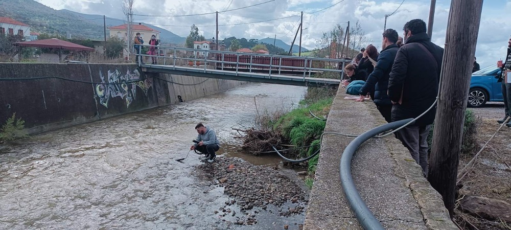 This was followed by a visit to the coastal area of Petra, which was treated as a dynamic “living laboratory” where scientific knowledge, social participation, and strategic planning come together. Petra, with its rushing streams, sandy coast, and harbor, is a complex and fragile coastal system. Scientific methodologies were applied, such as the environmental observation protocol for river estuary systems, the application of CrowdWater, the demonstration of hydrological instruments, and the application of beach carrying capacity and port resilience protocols. Plastic pollution was also recorded. The students came into direct contact with the local community, where concerns were raised and proposals were made for the future of the area.
