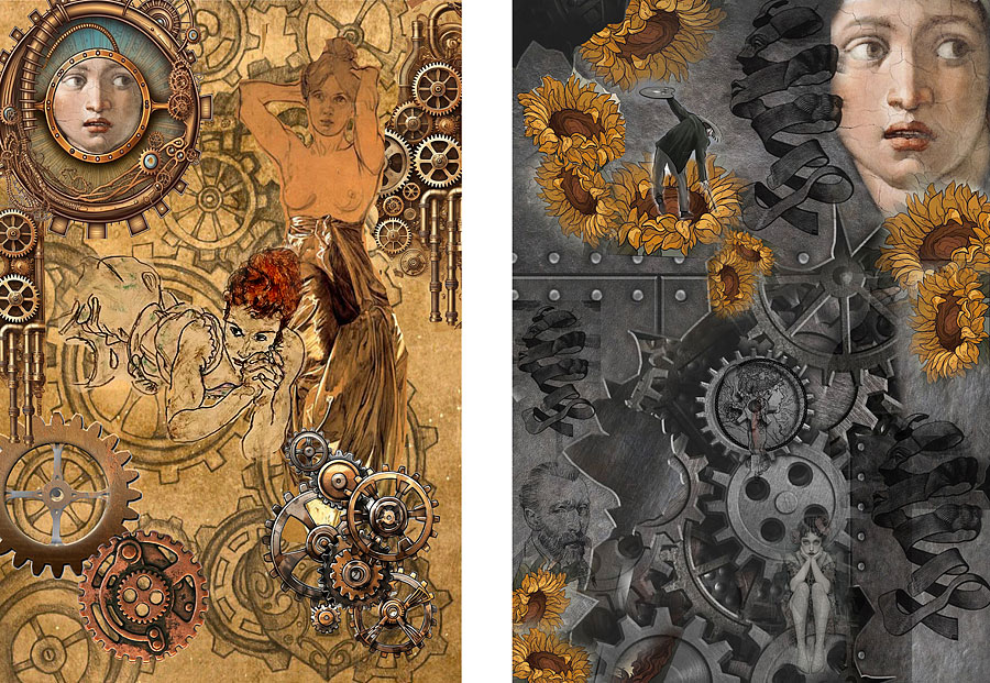 Maria Diakodimitriou lives in Athens and works in artistic print design. She holds a degree in English Language and Literature from the National and Kapodistrian University of Athens, with postgraduate studies in Linguistics at the University of Surrey in the United Kingdom. In 2005, she founded the art magazine Epoches. She has also studied Set Design and Three-Dimensional Model Making. Working mainly with paper, acrylics, layered printing techniques, and multimedia, she creates three-dimensional and multi-layered compositions that explore visual storytelling.