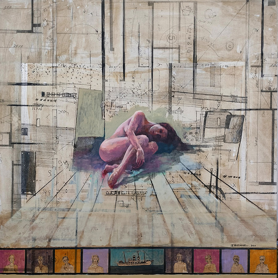 Petros Matzakos was born in Naxos and lives in Athens. He studied painting at the Athens School of Fine Arts under Dimitris Mytaras and received a master’s degree. As a graduate of the University of Athens with a degree in Education, he combined his two skills by passing on and introducing art into the public education system where he worked.
