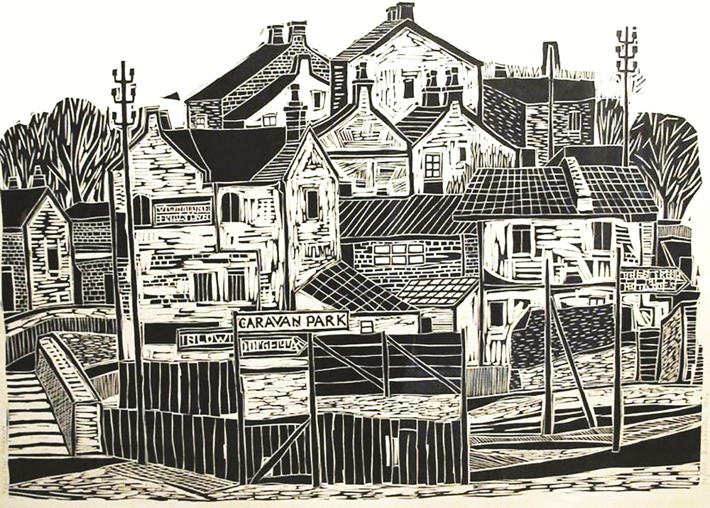 George Sikelotis, Village in Wales, 1971-75, engraving, 75 x 106 cm, no. 1217, Courtesy of: George N. Vogiatzoglou Gallery